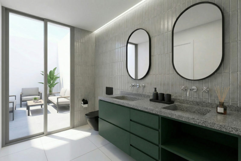 Durabilidad: Materiales como el hormigón, los porcelánicos de calidad y la carpintería a medida están pensados para resistir el alto tránsito del alquiler.