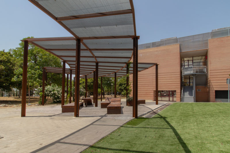 Para la ejecución del espacio, arropados por la UMA, nos reunimos cuatro grandes empresas malagueñas para hacer realidad un proyecto pionero Smart Campus. DIKA estudió el diseño junto con las constructoras Verosa y CFCV en la construcción, y Creame en la producción del mobiliario exterior.