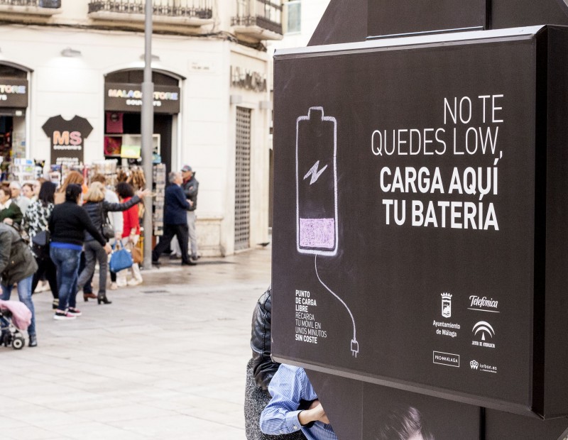 Se trata de una experiencia pionera a nivel nacional, un proyecto en el que participan Telefónica y Junta de Andalucía a través del espacio de aceleración crowdworking La Farola, de la iniciativa Andalucía Open Future, con la colaboración también del Ayuntamiento de Málaga y Promálaga. iurban (alojada en La Farola) es la startup encarga de la instalación y diseño del sistema de carga. Los tres primeros puntos de carga libre están situados en sendas cabinas telefonicas ubicadas en el centro de la ciudad ( Plaza Felix Saenz, Plaza de la Marina y Calle Molina Lario muy cerca de nuestro proyecto para La Taberna del Obispo con Cervezas Victoria ).