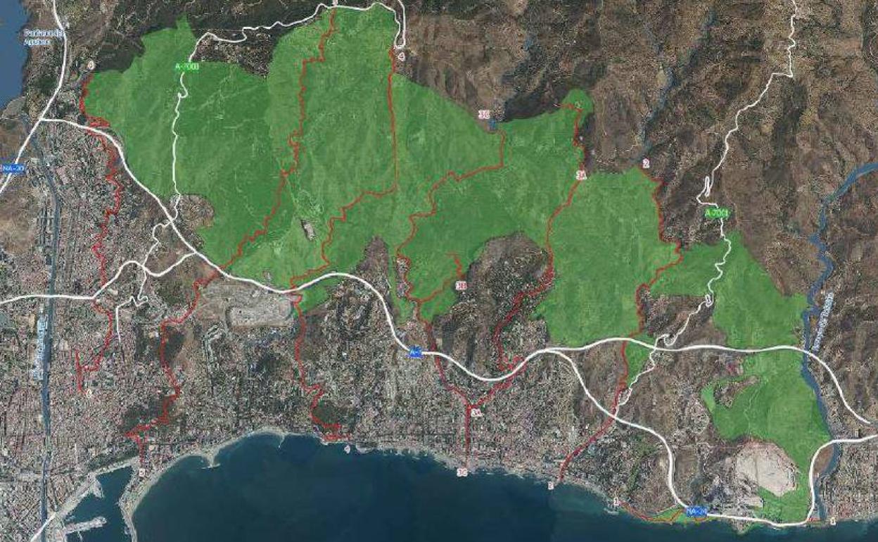 Propuesta para crear una franja de bosques periurbanos que conecten Málaga con sus municipios vecinos. Vital para proteger la biodiversidad y frenar la expansión sin control. Estos espacios vegetales deben ser colchón de protección y contención, entre lo urbano y lo «salvaje» pues no olvides, que son esos espacios totalmente alejados de lo urbano, los más importantes, donde la biodiversidad, fauna y flora contribuye de manera masiva a la captación de lluvias, a la fijación del terreno y a la mejora local del clima contribuyendo al cambio global.